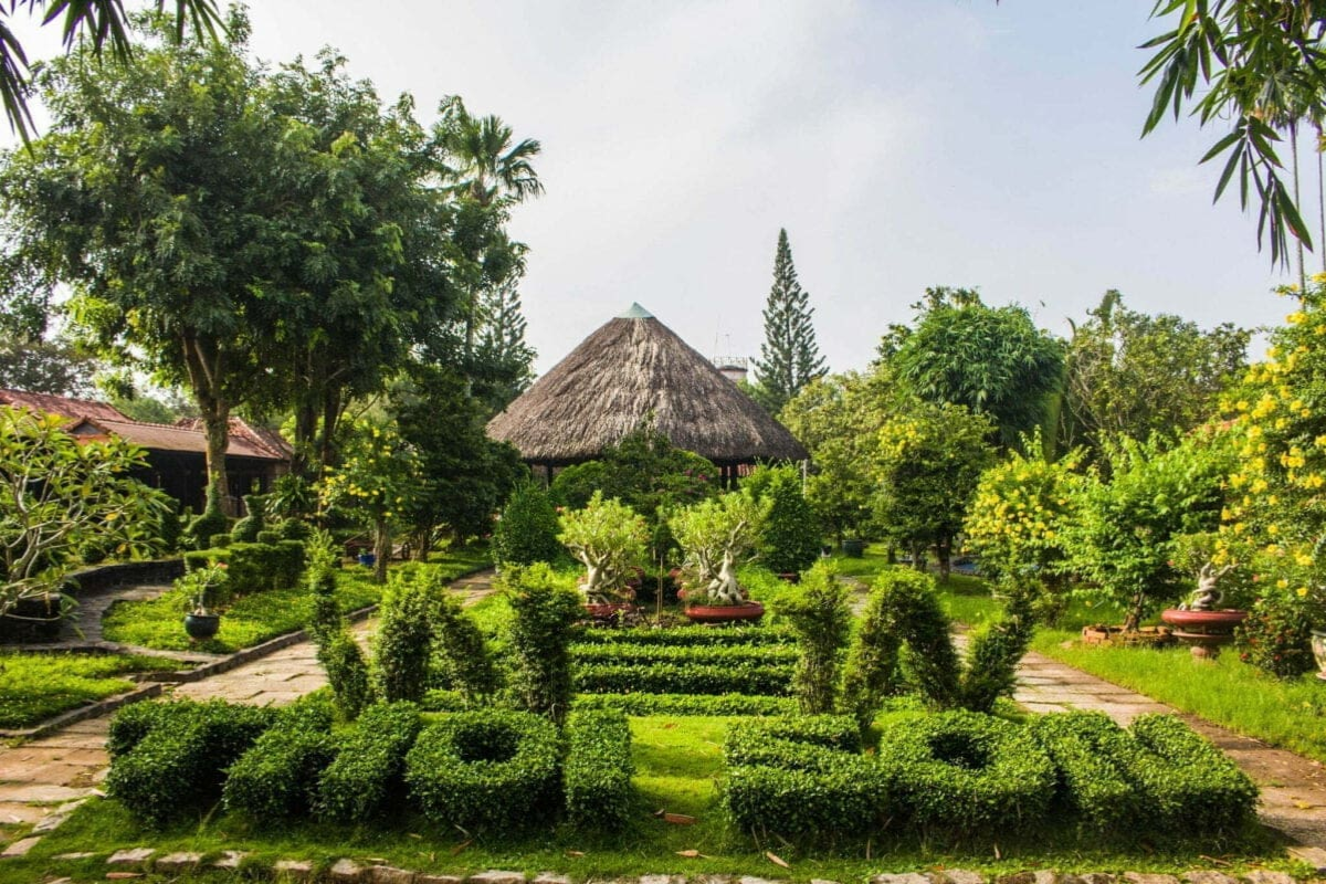 Trải nghiệm đi xuồng chèo len lỏi vào rạch nhỏ, ngắm nhìn hai hàng dừa nước xanh mát và phong cảnh bình dị của miệt vườn.